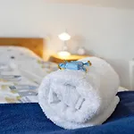 Dieses Apartment hat 1 Badezimmer, ausgestattet mit einer Badewanne und einer Dusche sowie einem Haartrockner und Badelaken.